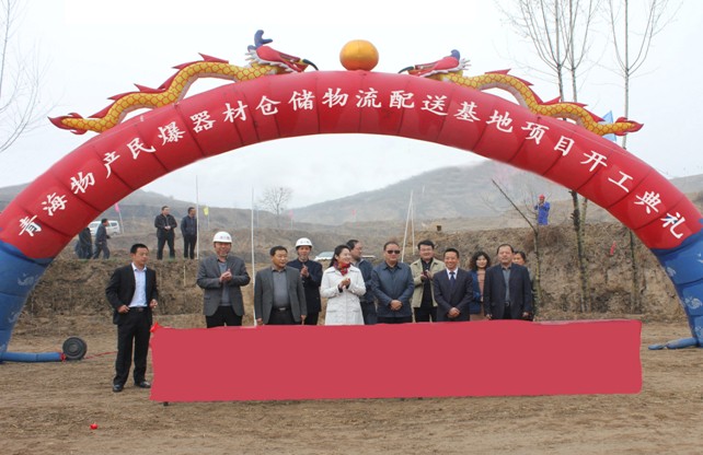 2014年4月11日9時(shí)18分,青海物產(chǎn)民爆器材倉(cāng)儲(chǔ)物流配送基地項(xiàng)目開(kāi)工儀式在大通縣長(zhǎng)寧鎮(zhèn)上孫家寨村項(xiàng)目建設(shè)現(xiàn)場(chǎng)舉行。