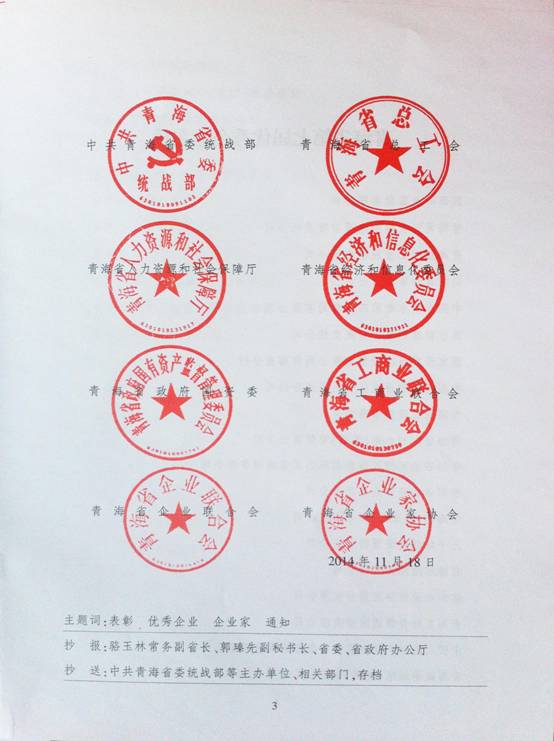 由省委統(tǒng)戰(zhàn)部、省總工會(huì)等8家單位聯(lián)合組織開展的"青海省優(yōu)秀企業(yè)、企業(yè)家"評(píng)選表彰活動(dòng),經(jīng)過多重、嚴(yán)格評(píng)審,青海省物產(chǎn)集團(tuán)總公司榮獲"青海省第七屆優(yōu)秀企業(yè)"稱號(hào)。集團(tuán)及所屬各公司將繼續(xù)發(fā)揚(yáng)成績、再接再厲,進(jìn)一步發(fā)揚(yáng)改革創(chuàng)新精神,不斷開拓市場,攻堅(jiān)克難、腳踏實(shí)地、真抓實(shí)干,為實(shí)現(xiàn)物產(chǎn)集團(tuán)科學(xué)穩(wěn)健發(fā)展做出新貢獻(xiàn)。