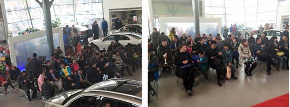2015年11月14日14時(shí),物產(chǎn)汽貿(mào)公司汽車展廳主題為"瘋狂2小時(shí)"團(tuán)車會(huì)順利召開,最終以轉(zhuǎn)化新車訂單65個(gè),收集新建客戶信息卡30個(gè)圓滿落下了帷幕。