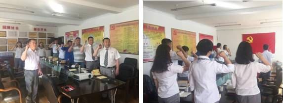 2016年6月30日,青海物產(chǎn)汽貿(mào)公司黨支部組織全體黨員慶"七一"上黨課。黨課開始之前,全體黨員面向黨旗重溫了《入黨誓詞》。"我志愿加入中國共產(chǎn)黨,擁護黨的綱領(lǐng),遵守黨的章程,履行黨員義務(wù),執(zhí)行黨的決定,嚴守黨的紀(jì)律,保守黨的秘密,對黨忠誠,積極工作,為共產(chǎn)主義奮斗終身,隨時準(zhǔn)備為黨和人民犧牲一切!永不叛黨"。