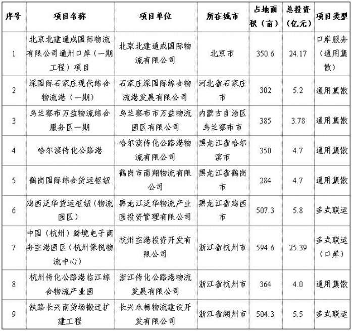 為促進物流業(yè)"降本增效",加快貨運樞紐(物流園區(qū))建設,我部委托咨詢評估單位對申報2019年投資補助資金的貨運樞紐(物流園區(qū))項目進行了審核。經(jīng)統(tǒng)籌研究,按照《交通運輸部貨運樞紐(物流園區(qū))投資補助項目管理辦法(暫行)》相關要求,現(xiàn)將擬安排投資補助資金的項目予以公示。公示時間:2018年9月20日至2018年9月27日;如有異議,請于2018年9月28日前與交通運輸部綜合規(guī)劃司聯(lián)系。聯(lián)系電話:010-65293196;郵箱地址:zgc@mot.gov.cn;聯(lián) 系 人:劉 凌;附 件:擬安排投資補助資金貨運樞紐(物流園區(qū))項目表
