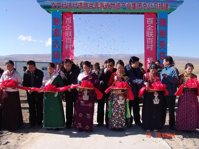 2011年10月16日,集團(tuán)總公司在共和縣江西溝鄉(xiāng)元者村舉行"百企聯(lián)百村"捐建共和縣江西溝鄉(xiāng)元者村黨員活動(dòng)室、科普文化室、醫(yī)療衛(wèi)生室和黑馬河鄉(xiāng)文巴村進(jìn)村道路工程項(xiàng)目交接儀式。集團(tuán)公司總經(jīng)理王玉輝、黨委書(shū)記白家林、紀(jì)委書(shū)記王仁芬、共和縣人大常委會(huì)主任尕瑪才讓、共和縣委常委、組織部長(zhǎng)官卻南見(jiàn)以及集團(tuán)"百企聯(lián)百村"活動(dòng)領(lǐng)導(dǎo)小組成員、總部全體職工、捐建工程項(xiàng)目部工作人員、施工方代表和有關(guān)縣、鄉(xiāng)、村領(lǐng)導(dǎo)、村民代表60余人參加交接儀式。