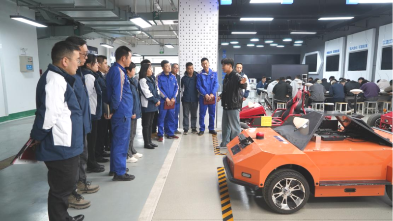 在參觀汽車專業(yè)實訓中心時,交通運輸學院汽車系智慧互聯(lián)專業(yè)老師為支部黨員進行了精彩的現(xiàn)場授課。大家積極請教,互動交流,了解了智慧互聯(lián)交流與共享的新型模式,對生活和工作帶來便利和智能化體驗等內(nèi)容。在場認真聆聽的“物產(chǎn)工匠”石學林對近期將與高校老師組隊參加“西部陸海新通道建設(shè)全國引領(lǐng)性勞動和技能競賽”,有了新的啟發(fā)。下一步,校企雙方將會對“優(yōu)服務(wù)、壯產(chǎn)業(yè)”技能競賽項目進行深入的研究和探討,做到交流“不斷線”,學習“不停步”。