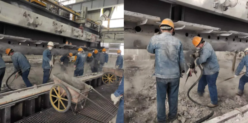 在每個(gè)大修槽大修的下午六點(diǎn),天車(chē)隆隆的轟鳴聲、風(fēng)鎬敲擊的脆響,交織成一首“戰(zhàn)斗序曲”。電解槽旁,十幾名職工正弓著腰,手持風(fēng)鎬,一點(diǎn)點(diǎn)剝離槽內(nèi)凝固的電解質(zhì)。他們的工服早已被汗水浸透,又被高溫烤干,結(jié)出一層白花花的鹽霜。這是電解槽大修的第七個(gè)晝夜。走近清槽現(xiàn)場(chǎng),一頂頂鮮艷的黃色安全帽,一聲聲震耳的電鎬聲,一把把明晃晃的鐵鍬,大家爭(zhēng)先恐后、分工明確、里應(yīng)外合,一波接著一波,清槽工作開(kāi)展的緊鑼密鼓、嚴(yán)絲合縫,一切繁雜工作顯得繁忙而又有序。清槽期間,由于任務(wù)量重,勞動(dòng)強(qiáng)度大,為加速清理進(jìn)度,大家干累了就在現(xiàn)場(chǎng)輪換原地休息,工作服濕了又干,干了又濕。看著清理出來(lái)的一堆堆廢渣和潔凈如新的電解槽,大家臉上露出欣慰的笑容。那笑容里,有完成任務(wù)的自豪,有戰(zhàn)勝困難的喜悅,更有對(duì)未來(lái)工作的堅(jiān)定信心。