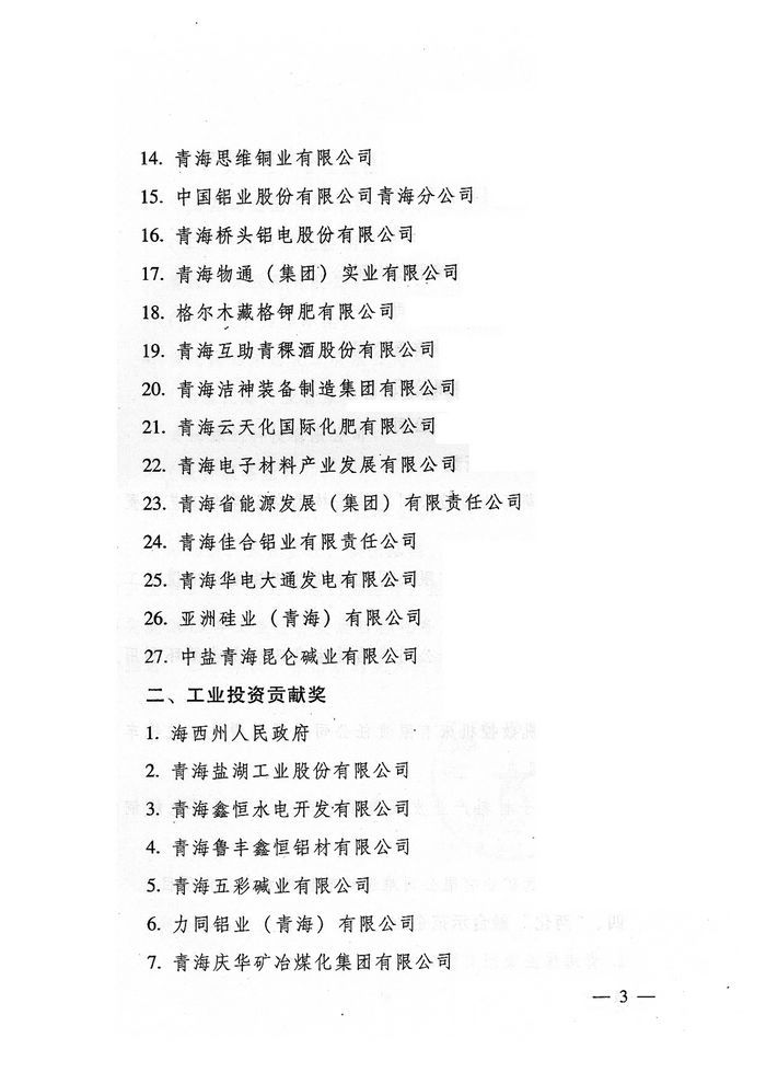 2012年,青海省物產(chǎn)集團(tuán)總公司在省委、省政府及省國(guó)資委的大力支持和領(lǐng)導(dǎo)下,集團(tuán)總公司按照全省工業(yè)經(jīng)濟(jì)總體部署和要求,著力推進(jìn)工業(yè)項(xiàng)目建設(shè),榮獲"2012年度工業(yè)投資貢獻(xiàn)獎(jiǎng)"。