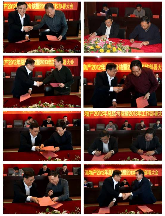 會(huì)上,由集團(tuán)總經(jīng)理王玉輝與所屬各公司、集團(tuán)各部簽訂2013年經(jīng)營業(yè)績(jī)目標(biāo)責(zé)任書,由集團(tuán)黨委書記白家林與所屬黨委(總支)、直屬黨支部簽訂黨建工作目標(biāo)管理責(zé)任書、與所屬各公司法定代表人簽訂黨風(fēng)廉政建設(shè)責(zé)任書。